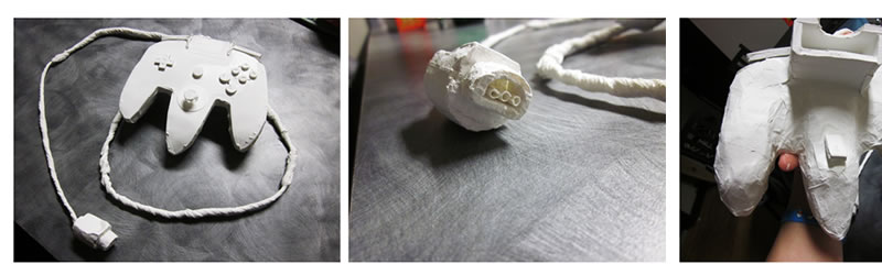 A papier-mâché Nintendo 64 controller, made by sakurachan24.
