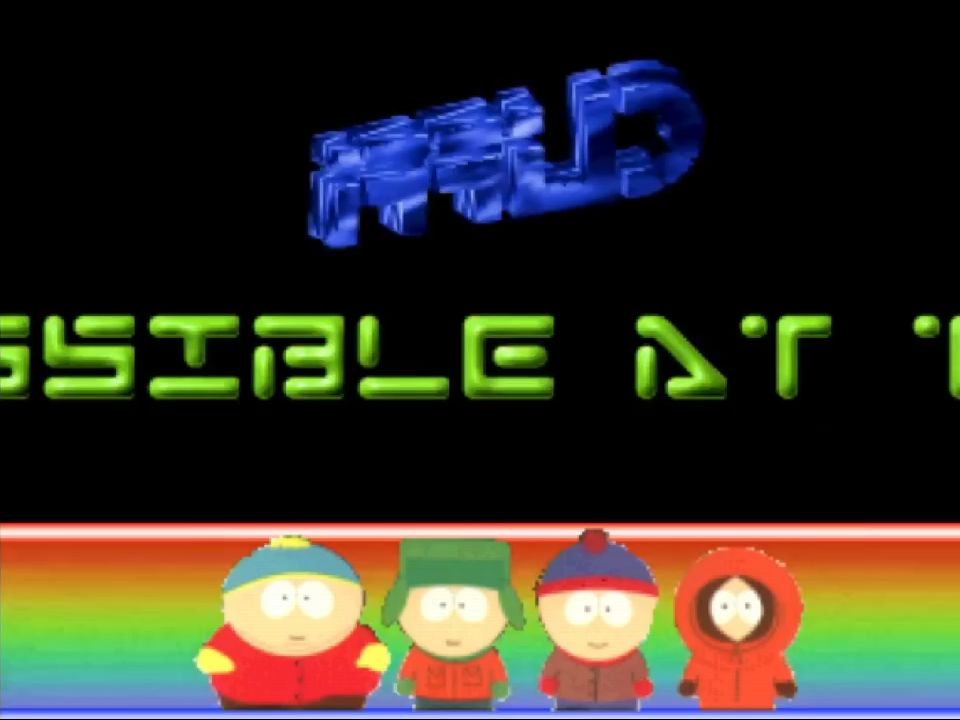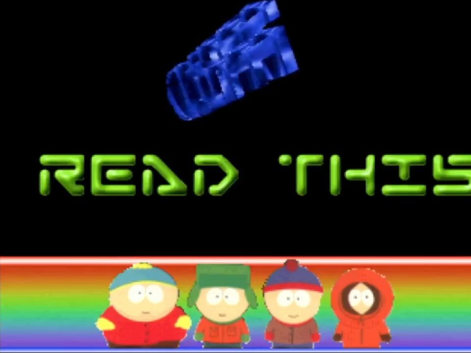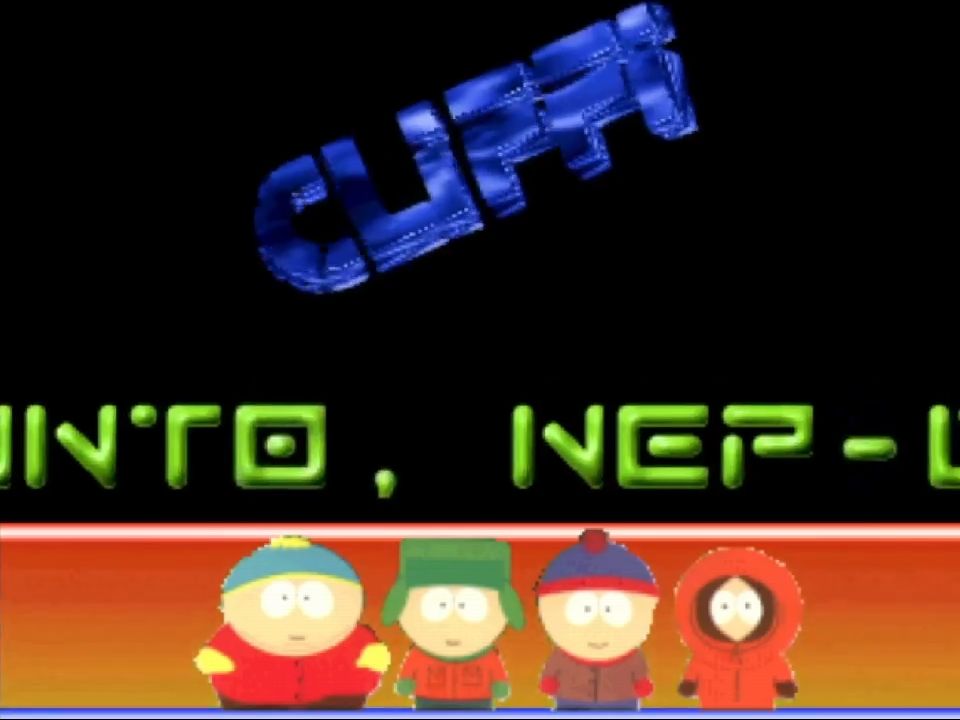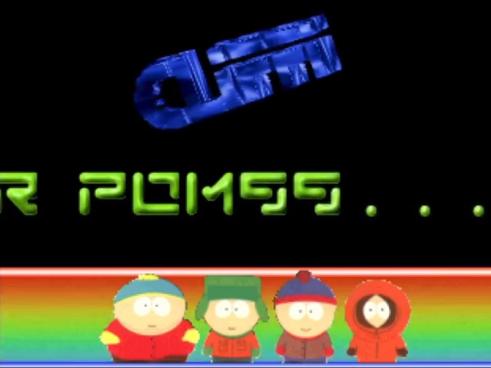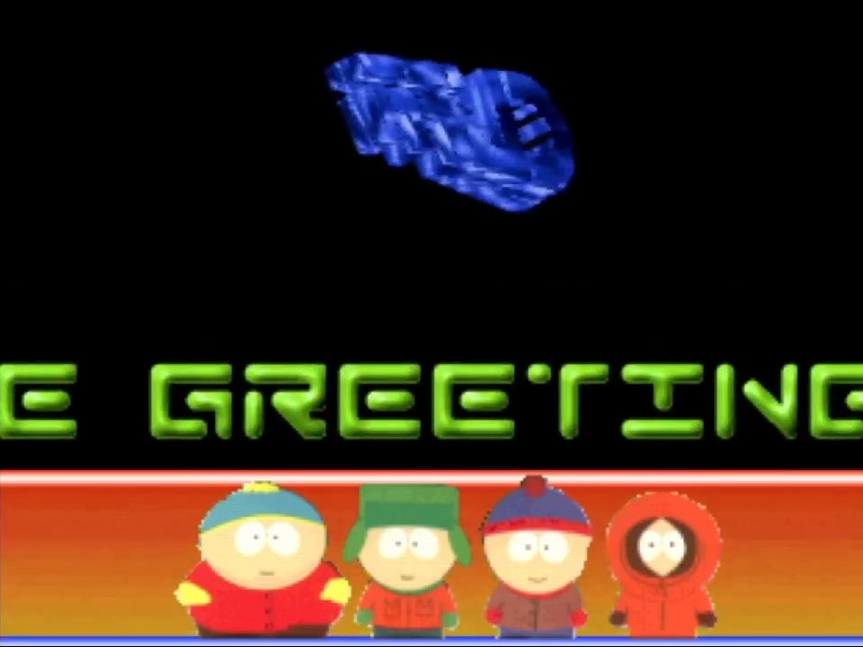 The bottom third of the screen has Cartman, Kyle, Stan and Kenny from South Park. This demo was released a few months before the movie Bigger Longer and Uncut so it was still rising towards the peak of its popularity.