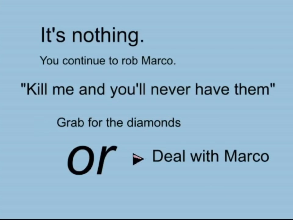 - The diamonds scatter all over the floor, you slip on them and fall out the plane