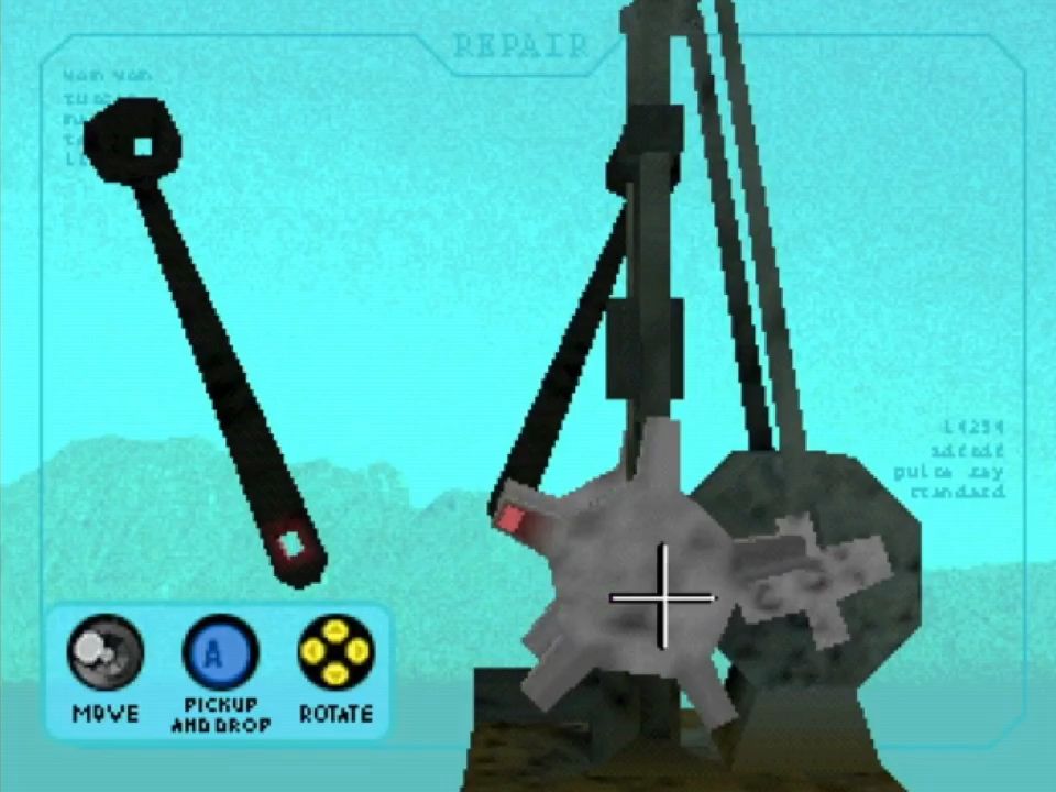 Once you repair the first object (your hoverbike), you can start exploring the open-world environment. It’s a desolate wasteland with three main areas: A river to the southeast, sand dunes to the north and a deserted city to the southeast. Each area has the parts for one of the repairable machines in it so you don’t have to do too much back tracking. The only exception is the final object, which has its parts placed throughout the world.