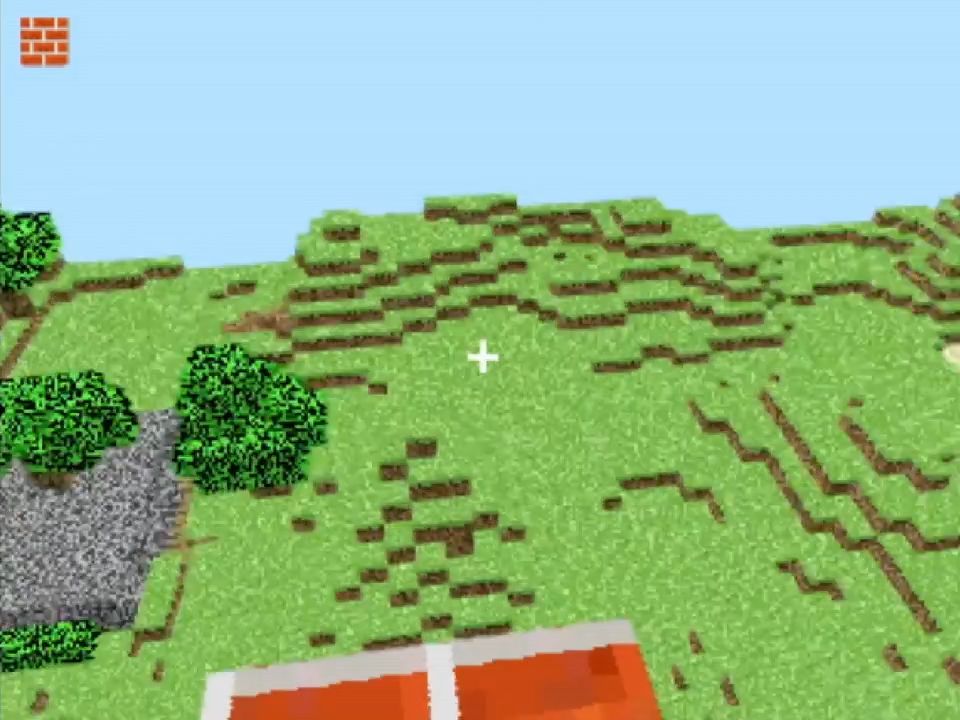 Mine 64 features a fairly accurate world generator. It makes a 64x64x32 world (131,072 blocks), but it doesn’t expand the way Minecraft does so you’re stuck within those bounds. You can save your world if you’re using a flash cart, it’ll create a mine64 folder and save your world in a 64k file. This doesn’t work on emulators though; you can just use a save state in that case.