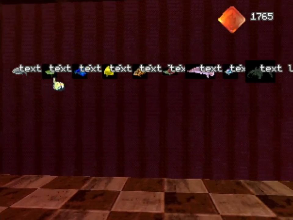 Pressing the L and R buttons rotates you around the room. Two of the other walls are empty, but the one to the right of the aquarium has a store where you can buy more fish. These are the fish you have available for purchase (even though they’re all labelled ‘text’):