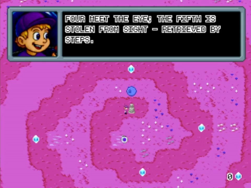 He puts you up to recalibrate your joystick, race along his intergalactic raceway, find a gem in a cave, collect the satellite parts before you get the tractor beam that allows you to put them into position. There is even a quest where you can get some more gems to expand your UFO’s arenal, but it’s entirely optional.